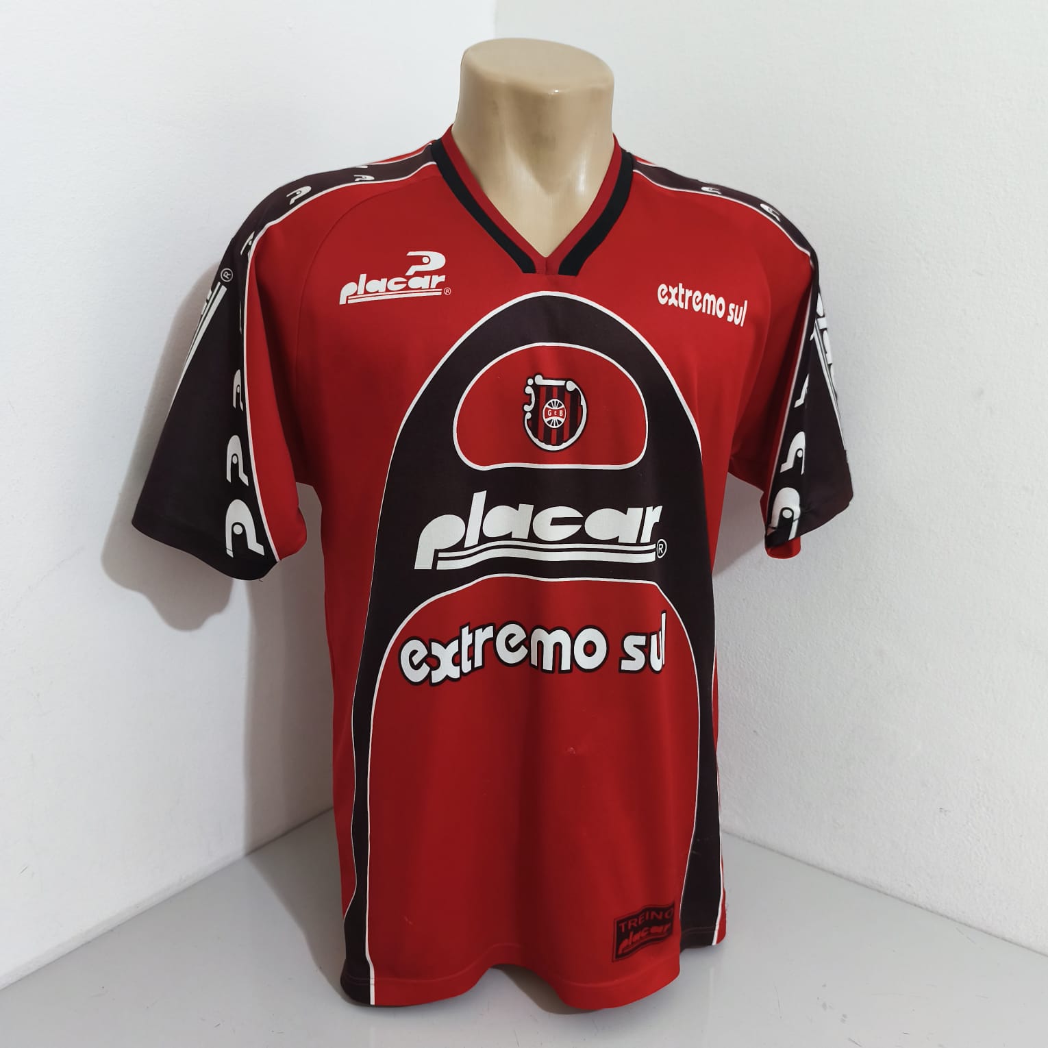 Camisa de treino do Brasil de Pelotas 2004. Camisa tem bolinhas e uma costurinha na frente.