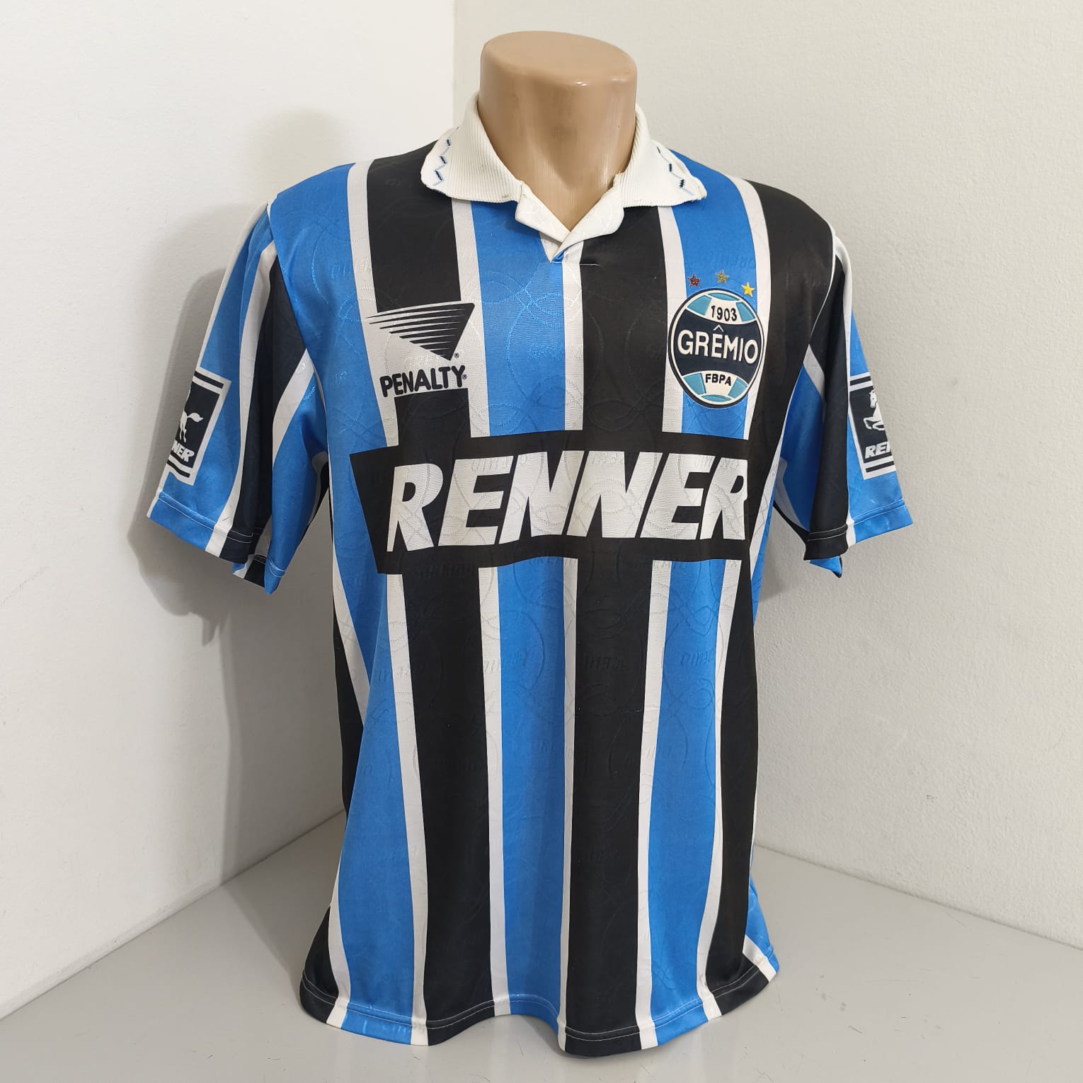 Uniforme titular do Grêmio 1995. Espetacular conservação, camisa com cores perfeitas, escudo e etiquetas conservadas, peça de coleção.
