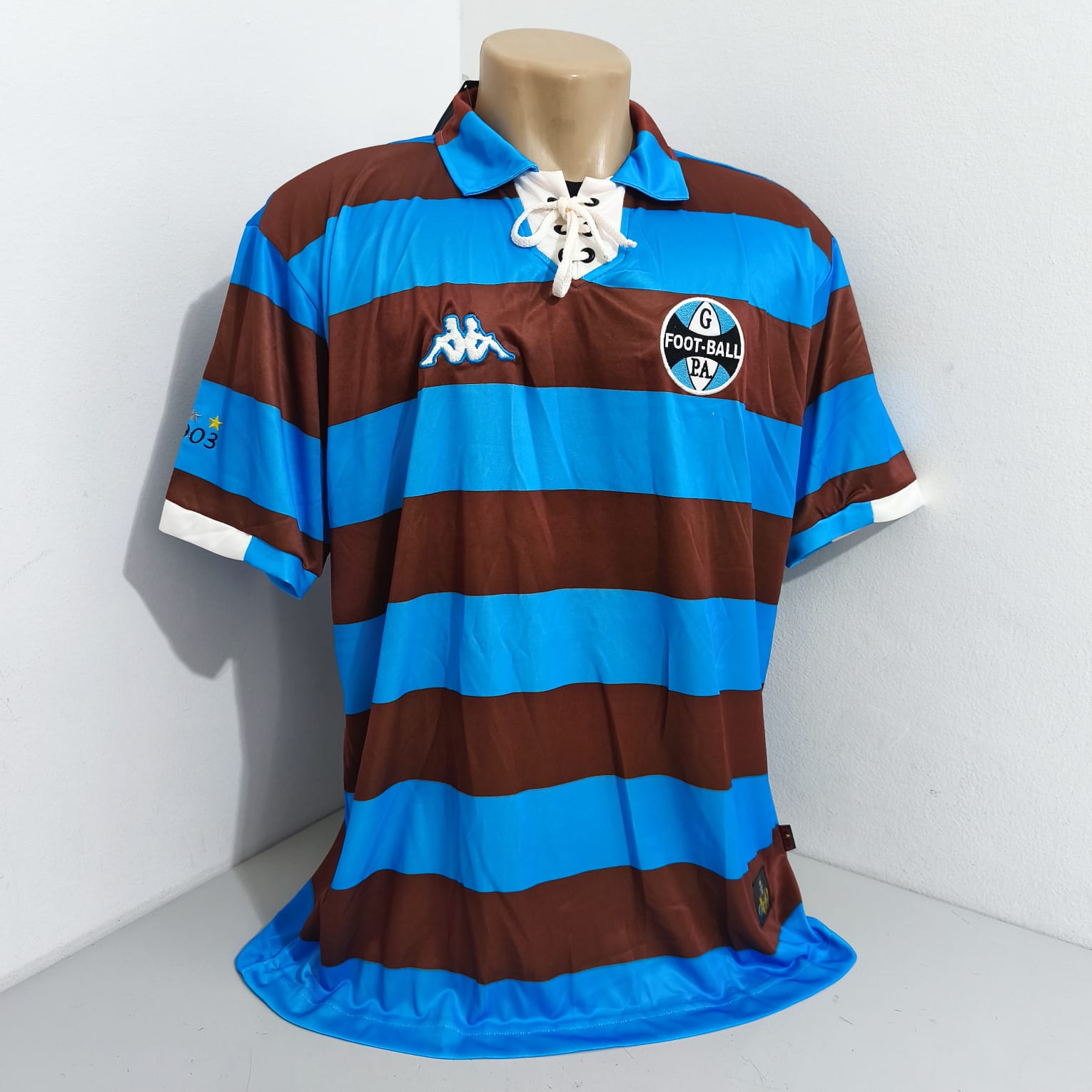 Camisa comemorativa do Grêmio 2003, alusiva ao primeiro uniforme usado pelo Grêmio em 1903, conhecido como "havana".