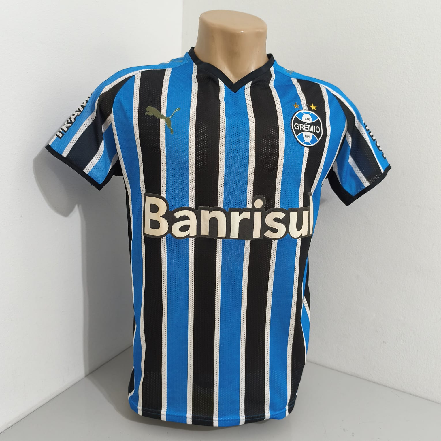 Uniforme titular do Grêmio 2008. Tecido e cores perfeitas. Camisa tem desgastes nos logos Puma, principalmente nos do ombro.