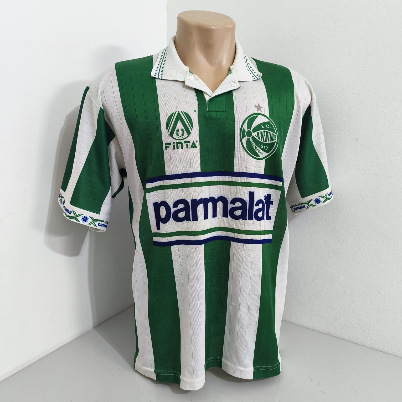 Uniforme titular do Juventude 1995/96. Camisa tem bastante bolinhas e alguns fios puxados no tecido. Tem duas manchinhas na frente, praticamente imperceptíveis.