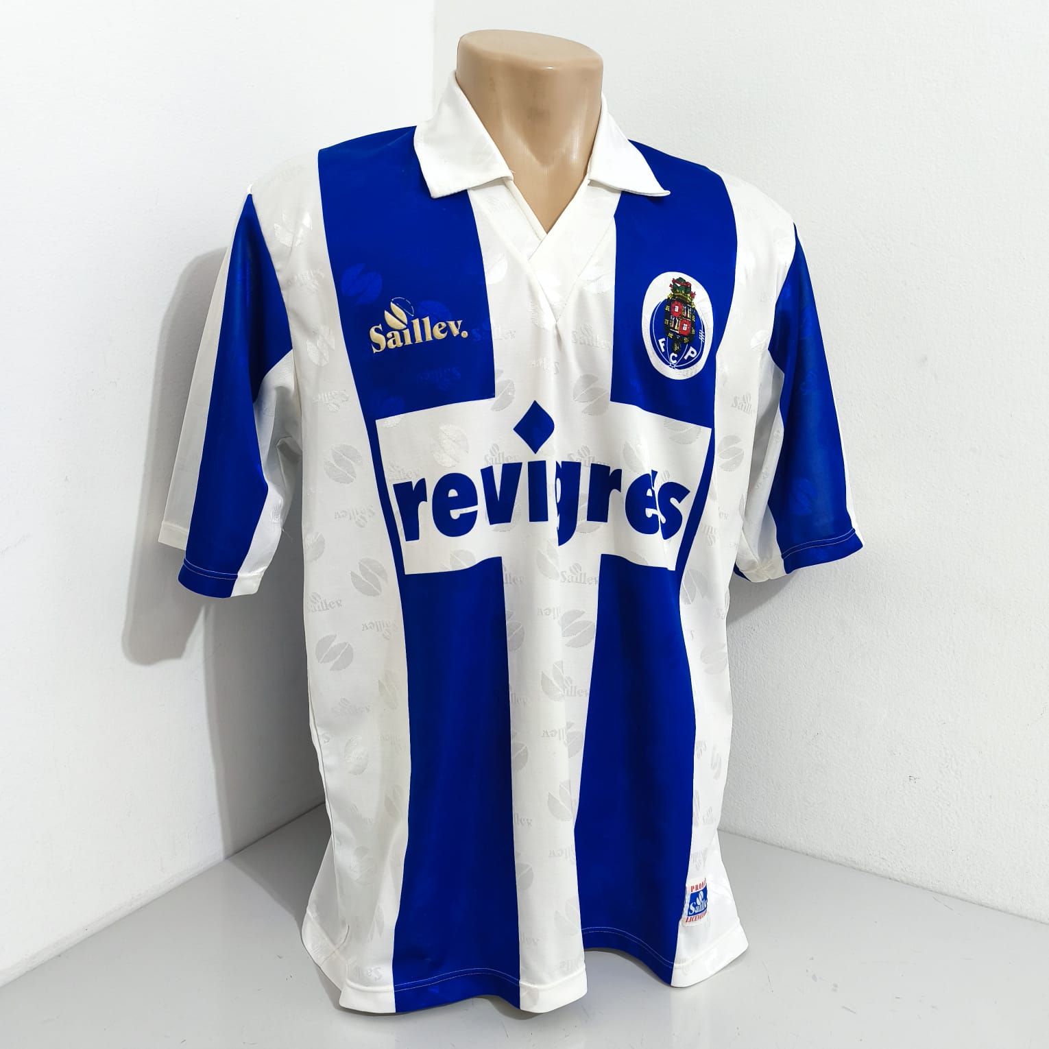 Uniforme titular do Porto 1994, modelo europeu da Saillev, marca que fazia camisas licenciadas para diversos clubes de Portugal.