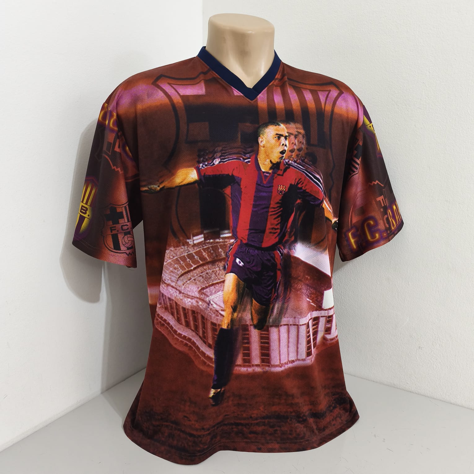 Camisa comemorativa do Ronaldo Fenômeno/Barcelona. Peça que era vendida na loja do clube em Barcelona. Tecido bem parecido com a da camisa do Barça 95/96.